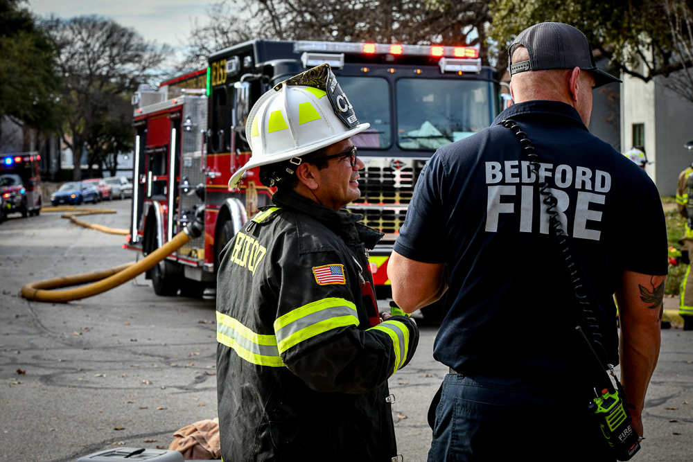 2 Alarm Apartment Fire – Bedford Apartment Fire Fire Service Incident January 10, 2026January 11, 2026 Bedford, TX January 8, 2026 – Bedford 911 dispatchers toned out an apartment fire in the 1600 block of Oak Creek Ln with automatic-mutual-aid from Euless. Station 3 crews reported seeing a header as they responded. On arrival, they found a 2 two-story apartment with heavy fire and smoke showing from a second story balcony and the roof. Battalion 15 requested a second alarm. Truck 154 firefighters started searching apartments while attacking the fire with Engine 153 on the A side. Engine 152 made an exterior attack on the balcony fire from the C side. Colleyville, Grapevine, Hurst, and Southlake firefighters responded to the scene and backfilled Bedford Station 1. Truck 154 set the aerial for a defensive attack, but fortunately was not needed due the to quick and effective interior and exterior work on the ground. Several pets were rescued, and fortunately no one was injured. Bedford and Euless police officers, animal services, code enforcement, and the American Red Cross all assisted.